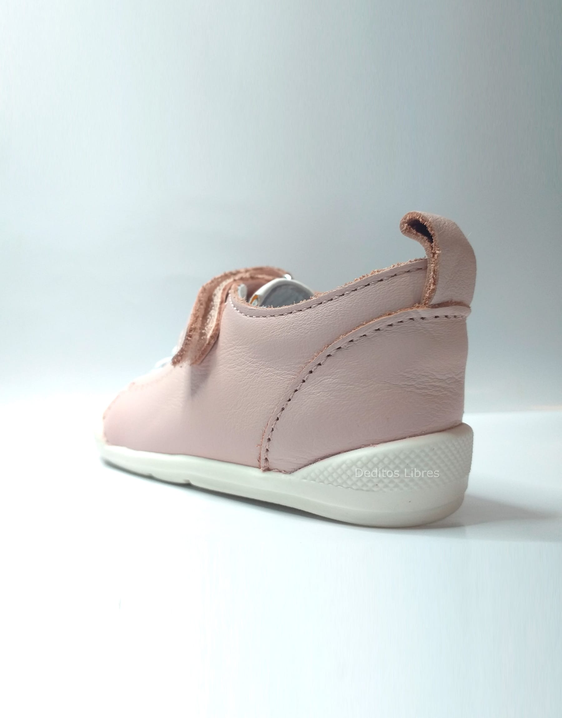 Con una puntera redonda y lo suficientemente ancha para que no le oprima sus deditos y evitar deformaciones. Recuerda que es mucho mejor que pueda mover los dedos libremente dentro del zapato sin ningún problema.SUELA FINA