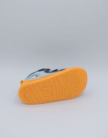 Su suela tiene 3 mm de grosor y con zero drop (totalmente plana) respeta el natural desarrollo del pie del pequeño y sus elementos flexibles y torsionables hace que el pie del niño no esté encorsetado por la estructura del zapato.