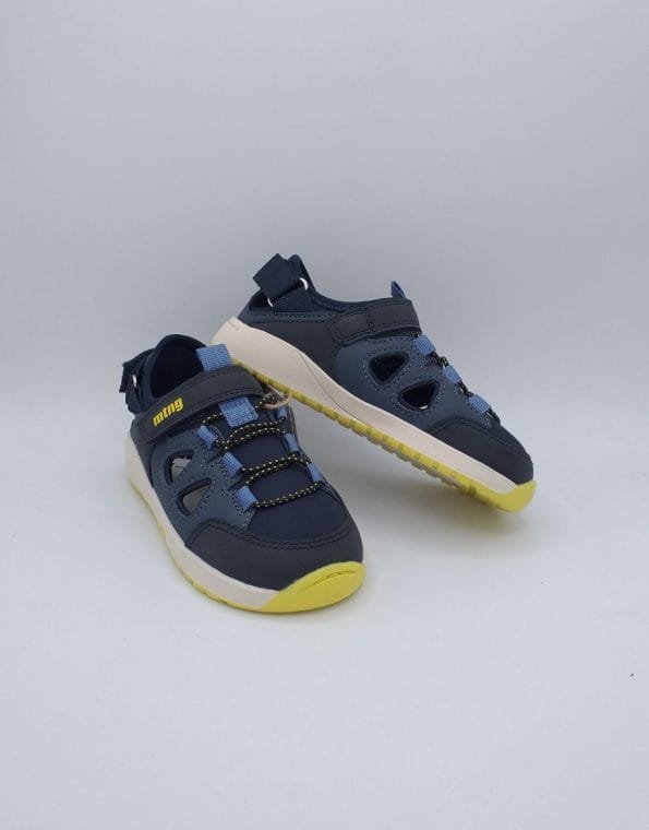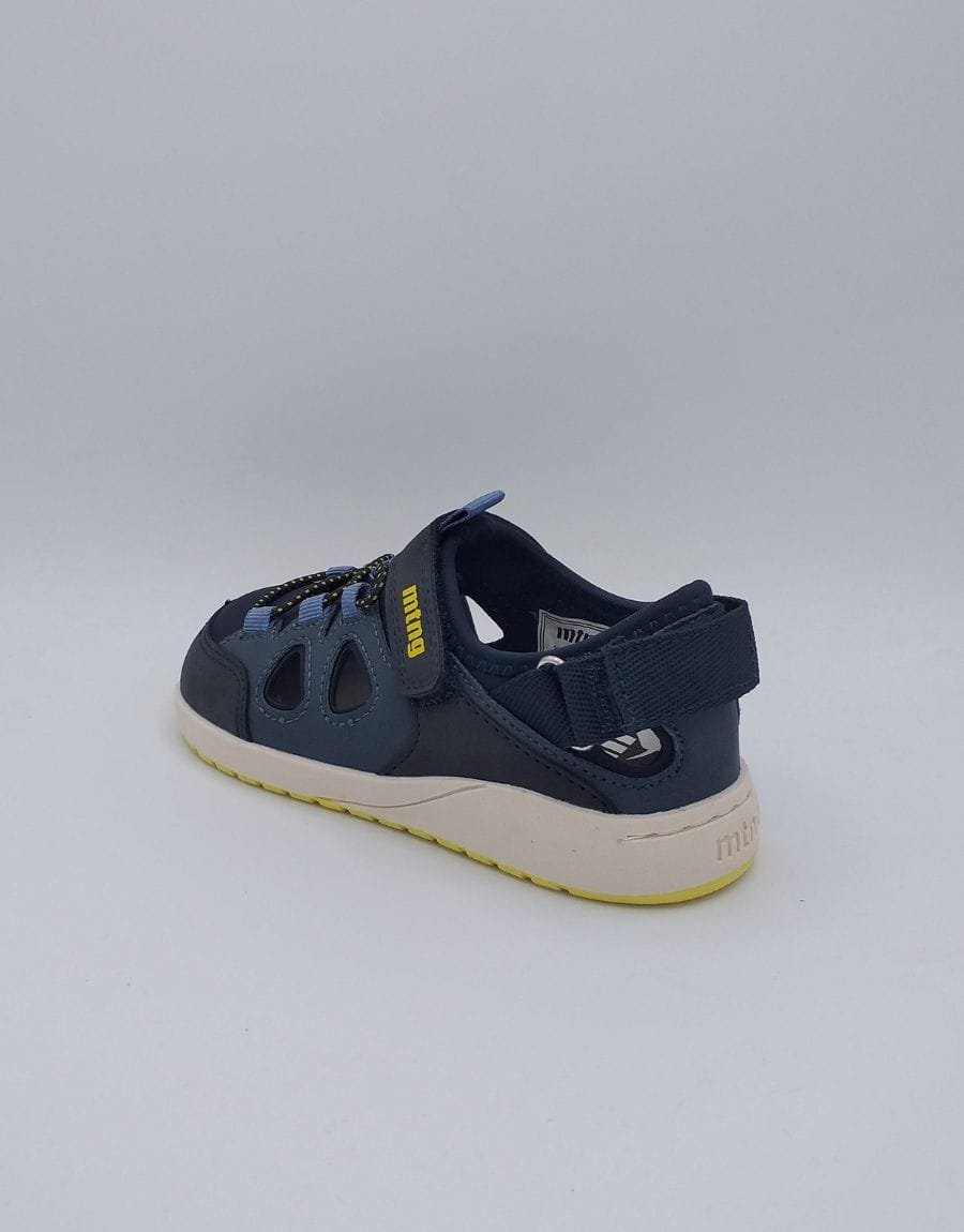 Sandalia de color marino, modelo Free de Mustang. Estas sandalias destacan por su diseño con aperturas laterales que mejoran la ventilación para mantener los pies frescos durante todo el día. Incorporan un cierre adhesivo ajustable que facilita su colocación y asegura un ajuste perfecto.